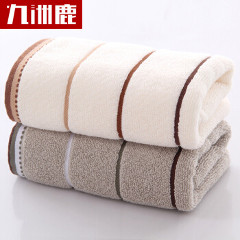 九洲鹿 毛巾家居 2条装 全棉舒适吸水加大面巾加厚款 情侣毛巾 洗脸面巾擦脸巾 33*74cm