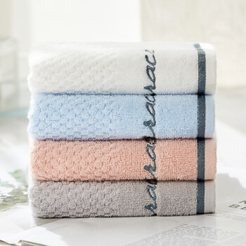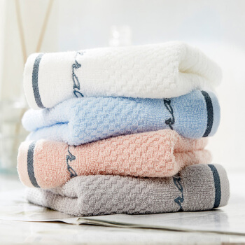 毛巾浴巾>>洁丽雅(Grace)毛巾家纺 纯棉绣花洗脸巾简约素雅面巾擦脸洁面巾四条装 红*兰*白*灰各一条