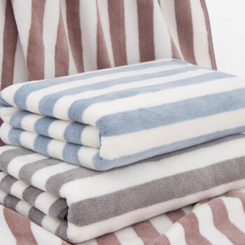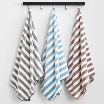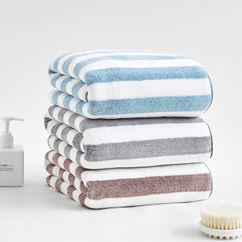三利 柔软吸水速干大浴巾 条纹洗澡巾裹身巾 70*140cm 浅蓝色
