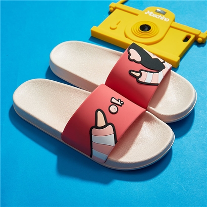 时尚卡通可爱趣味招手蘑菇头厚底舒适情侣凉拖鞋【pvc/西瓜红】
