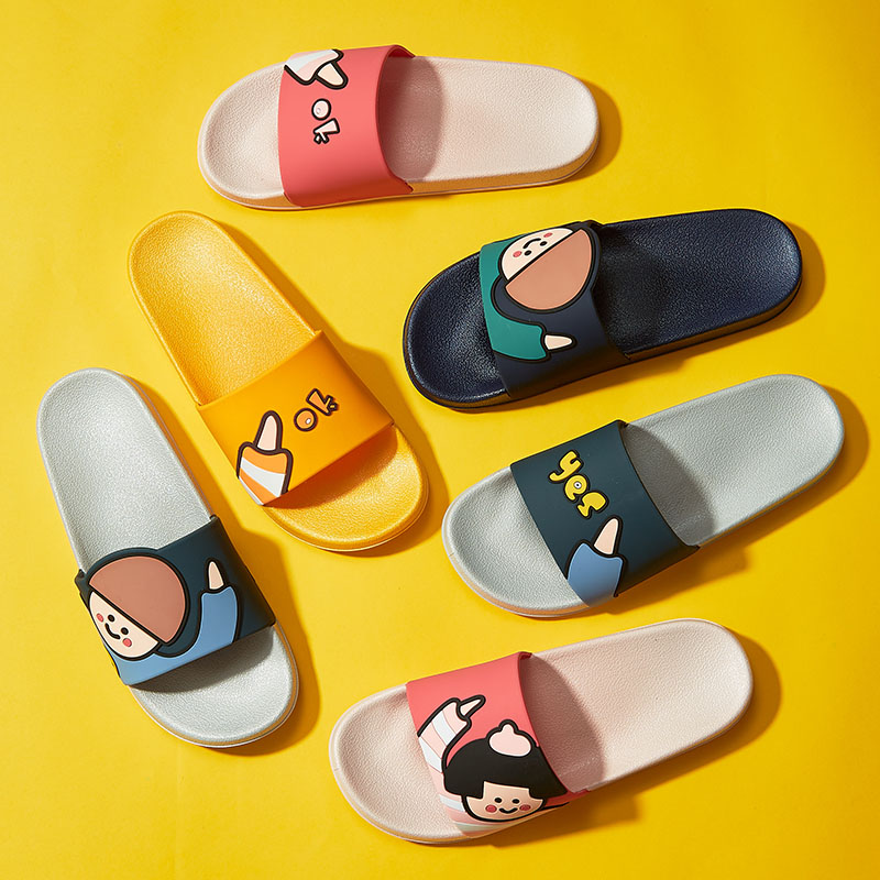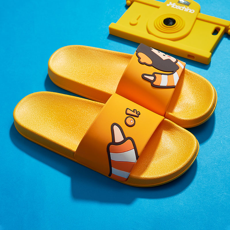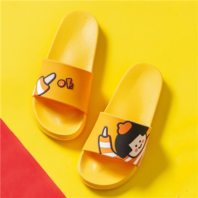 时尚卡通可爱趣味招手蘑菇头厚底舒适情侣凉拖鞋【pvc/金黄】
