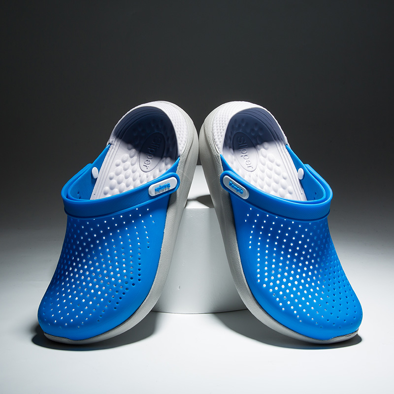 舒适出街时尚迷彩渐变撞色透气洞洞鞋【EVA/新海蓝/浅灰】