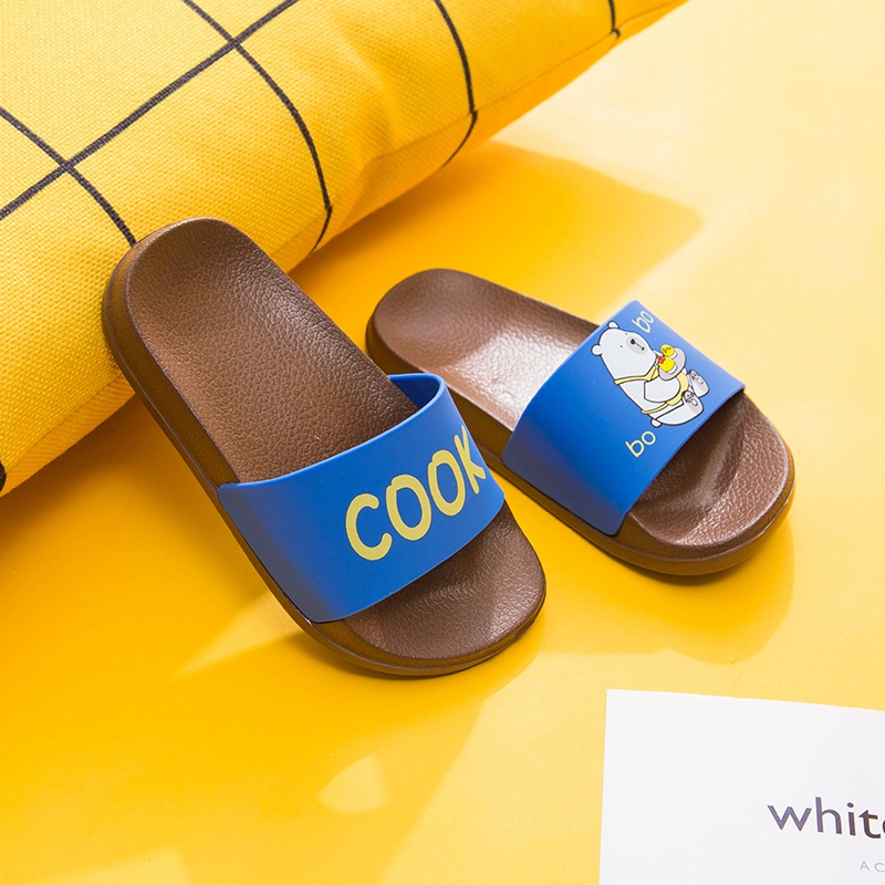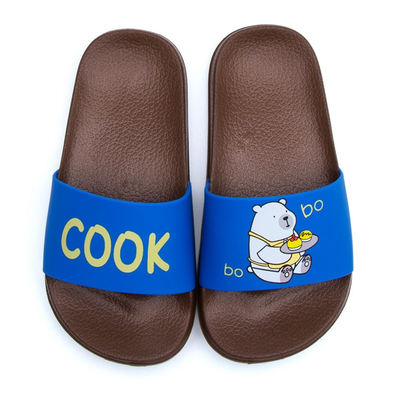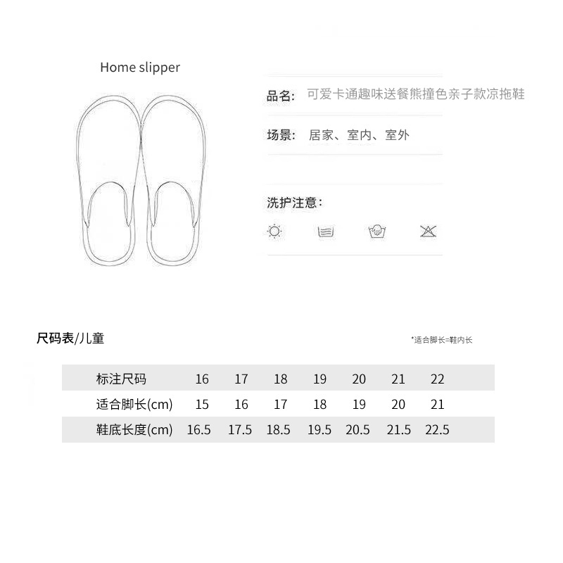 可爱卡通趣味送餐熊撞色亲子款凉拖鞋【橡塑/棕色/宝蓝【童鞋】】