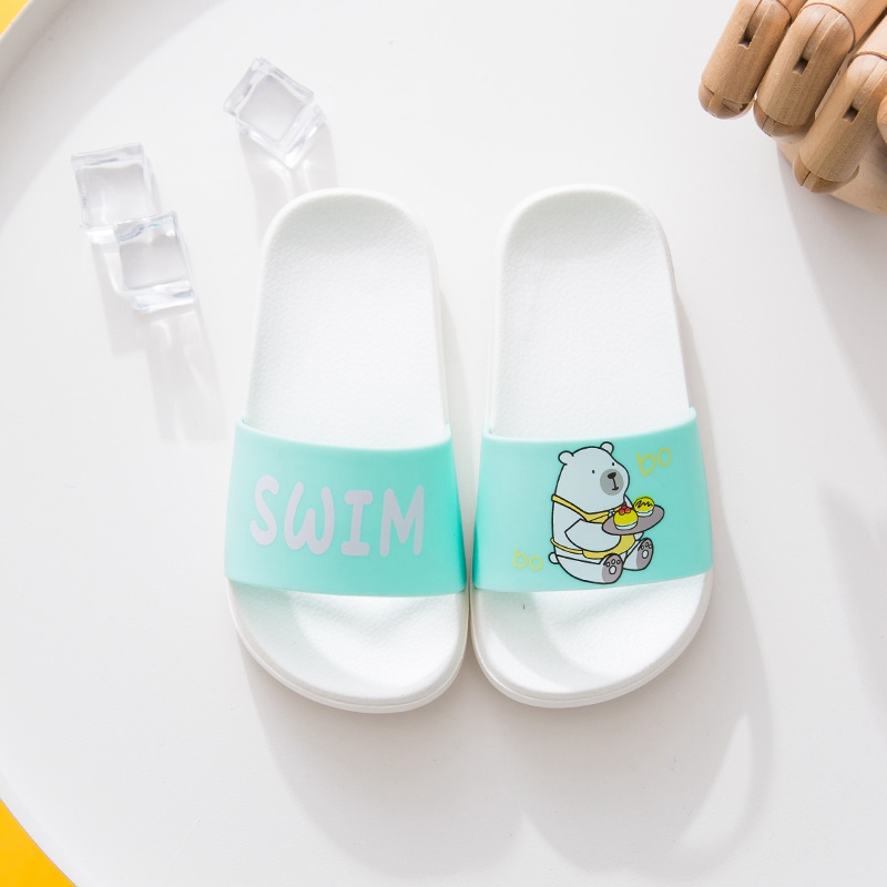 可爱卡通趣味送餐熊撞色亲子款凉拖鞋【橡塑/白色/湖蓝【童鞋】】