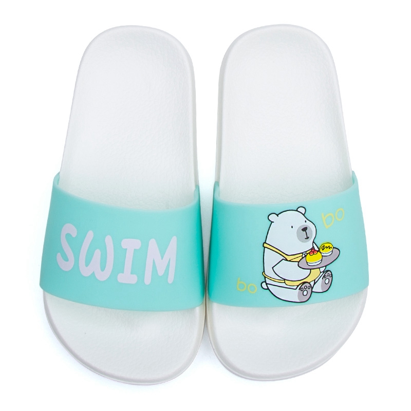 可爱卡通趣味送餐熊撞色亲子款凉拖鞋【橡塑/白色/湖蓝【童鞋】】
