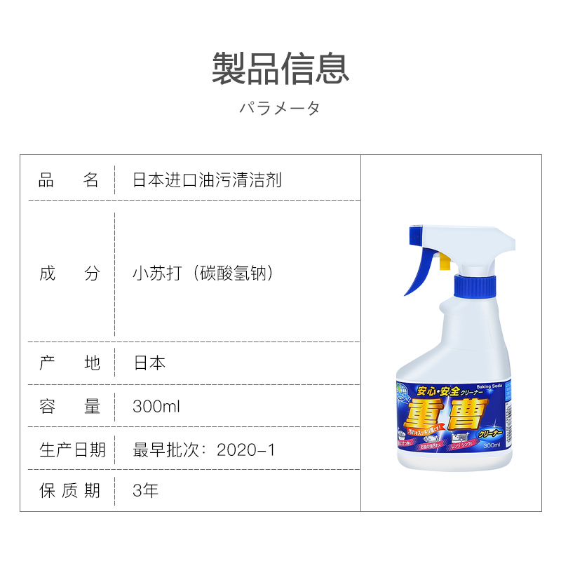 日本进口厨房油烟机清洗剂小苏打喷雾油污清洁剂