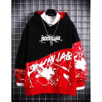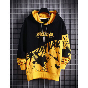 简艾伦 卫衣男连帽2019春秋季新款日系嘻哈潮流圆领加绒加厚长袖t恤男士韩版潮流学生套头宽松潮牌外套 WJX8808上黑下白 上衣【不加绒】 XL |