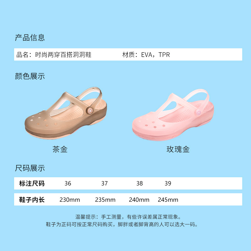 【超值单品】百搭舒适休闲滩凉洞洞鞋【底:EVA,面:TPR/茶金】
