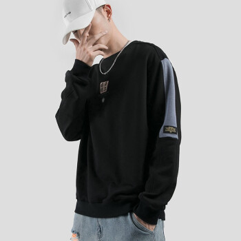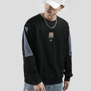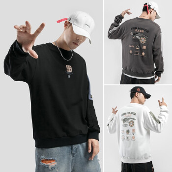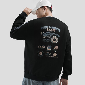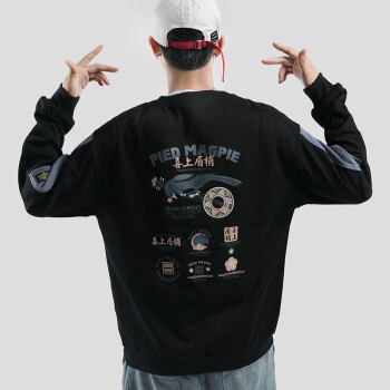 白灰楼 卫衣男秋装男士国潮cec宽松套头衫喜上眉梢印花长袖t恤男学生圆领情侣上衣外套 F8372黑色 L