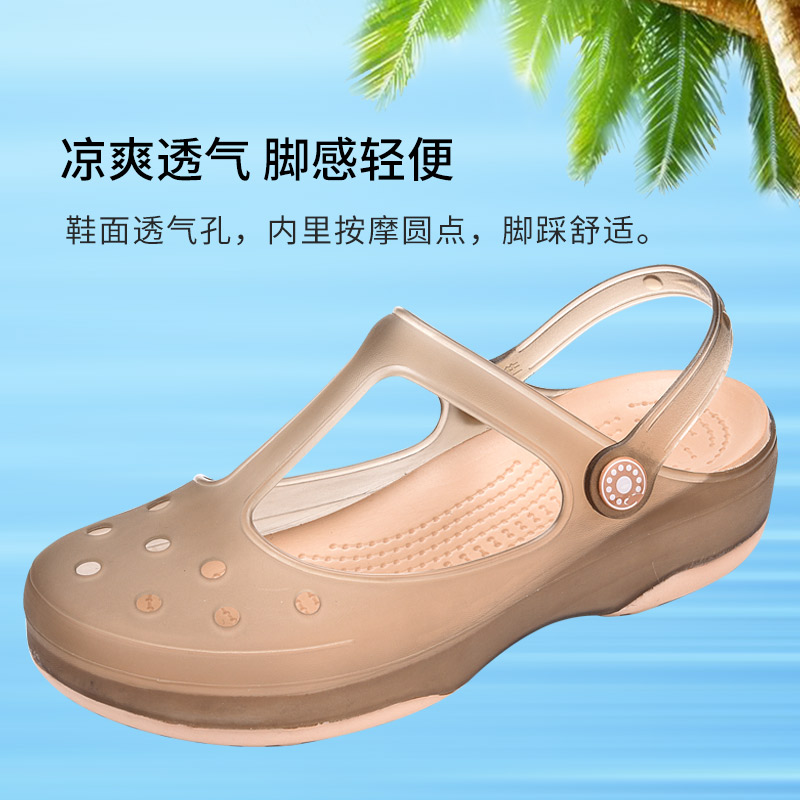 【超值单品】两双 百搭舒适休闲滩凉洞洞鞋【底:EVA,面:TPR/茶金】