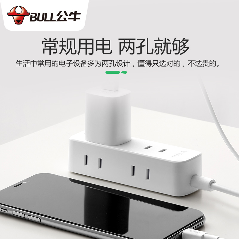 【超值单品】公牛插座两极迷你多功能智能插座2孔插排插线板插板接线板【2个装】【pp/白色】