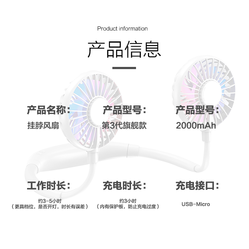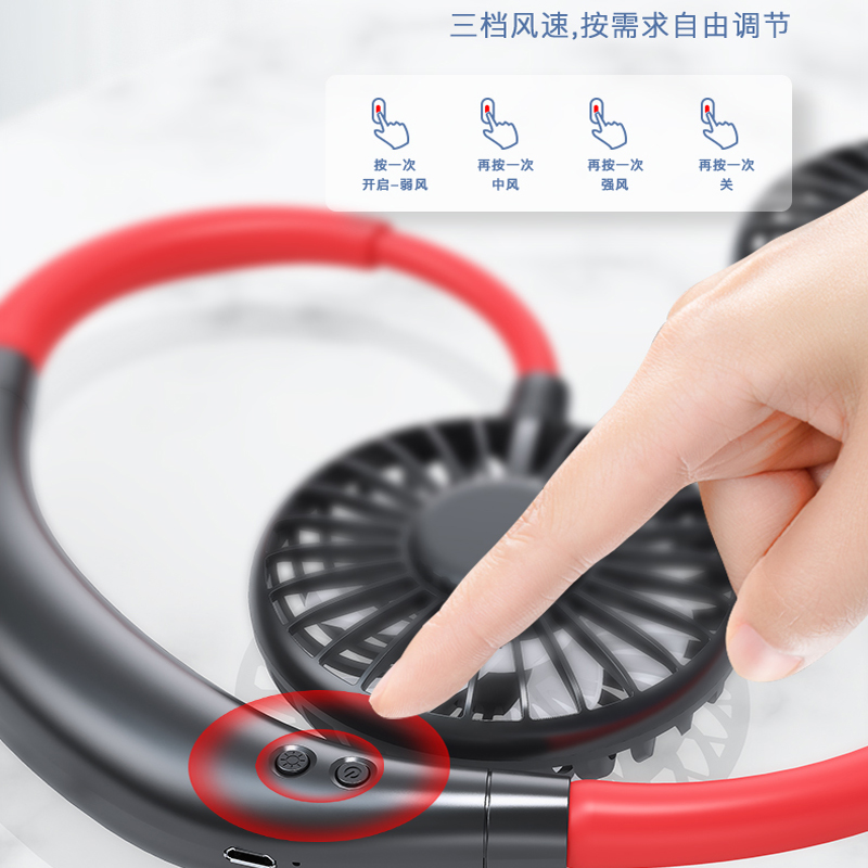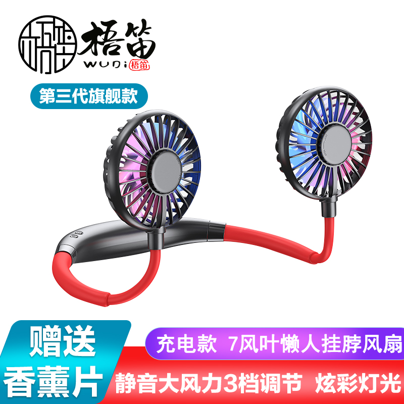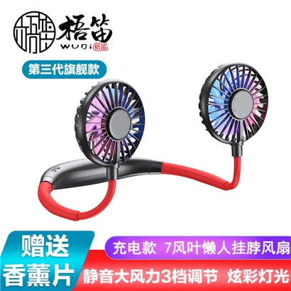 【超值单品】【带彩灯+香薰】第三代旗舰款7叶片挂脖风扇USB充电型【塑料+硅胶/黑红色】