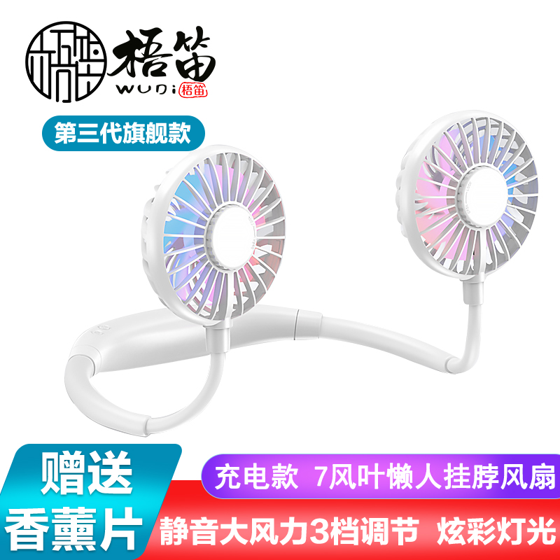 【超值单品】【带彩灯+香薰】第三代旗舰款7叶片挂脖风扇USB充电型【塑料+硅胶/白色】