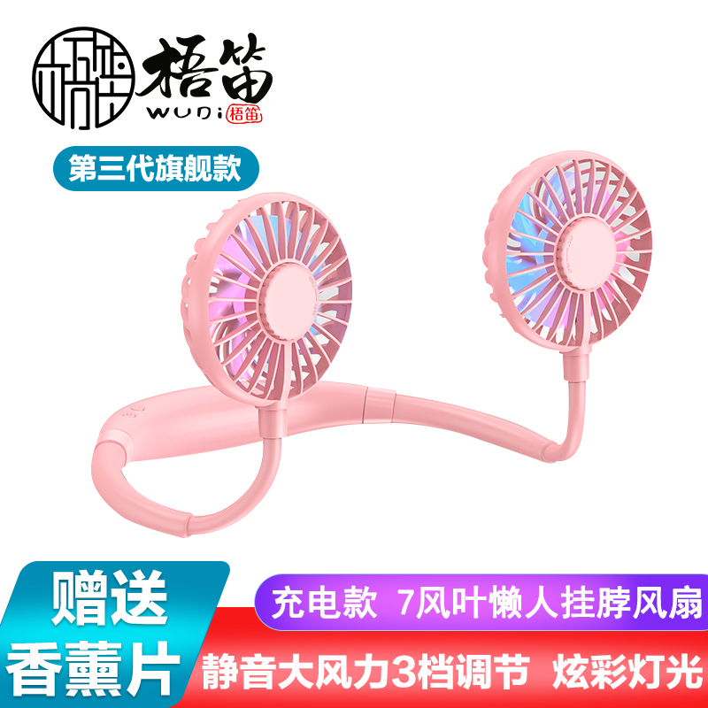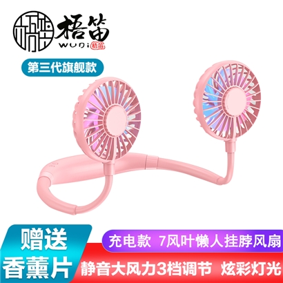 【超值单品】【带彩灯+香薰】第三代旗舰款7叶片挂脖风扇USB充电型【塑料+硅胶/粉色】