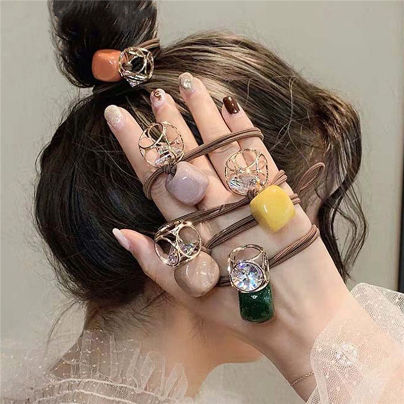 镂空水晶发圈5入【水钻 皮筋/混色】