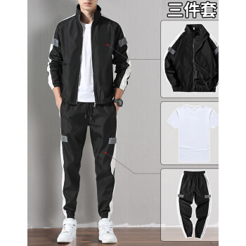 【超值 3件套】卫衣套装男春夏季运动套装2020新款潮休闲男装外套男服饰 801灰色(三件套) XL |