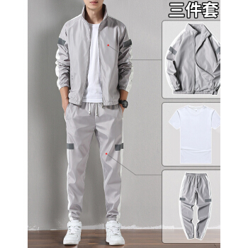 卫衣>>【超值 3件套】卫衣套装男春夏季运动套装2020新款潮休闲男装外套男服饰 801灰色(三件套) XL