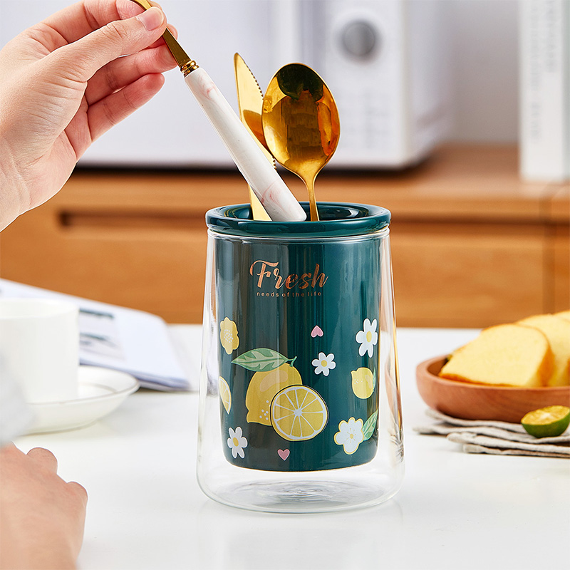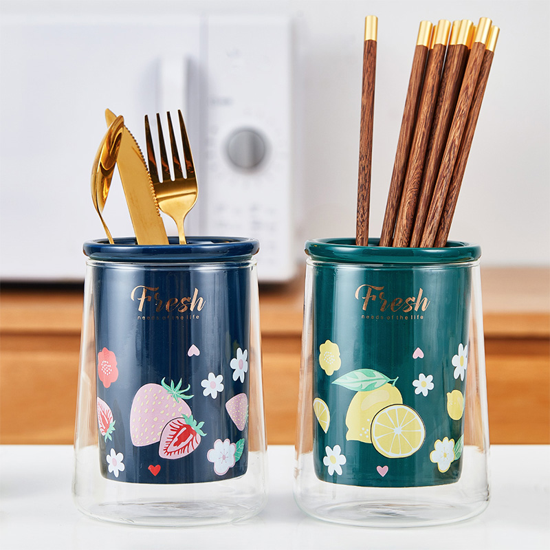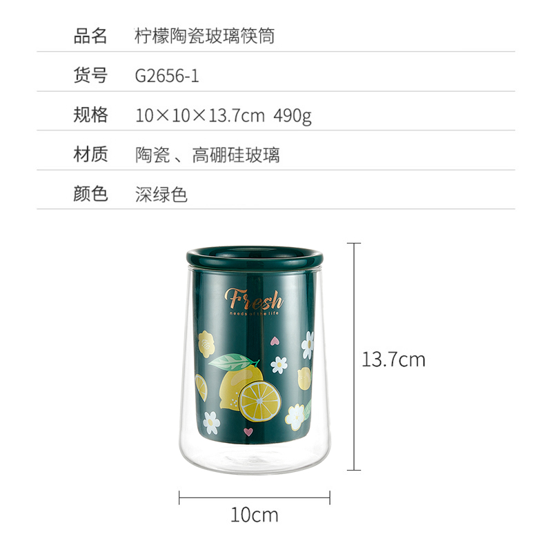 陶瓷玻璃筷筒【陶瓷 高硼硅玻璃/图片色】