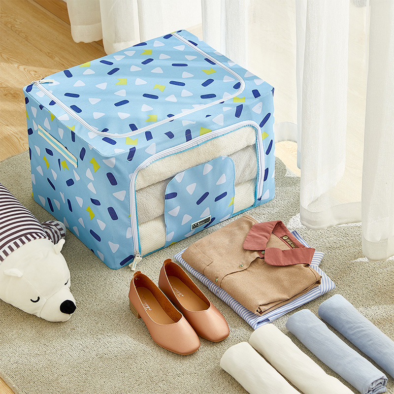 家用礼花碎片600D牛津布收纳箱66L2个装【主体:90%聚酯纤维 10%无纺布 框架:3.4mm铁架/图片色】
