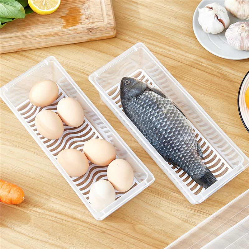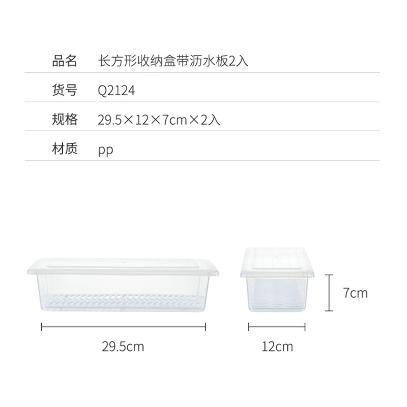 长方形收纳盒带沥水板2入【pp/透明色】