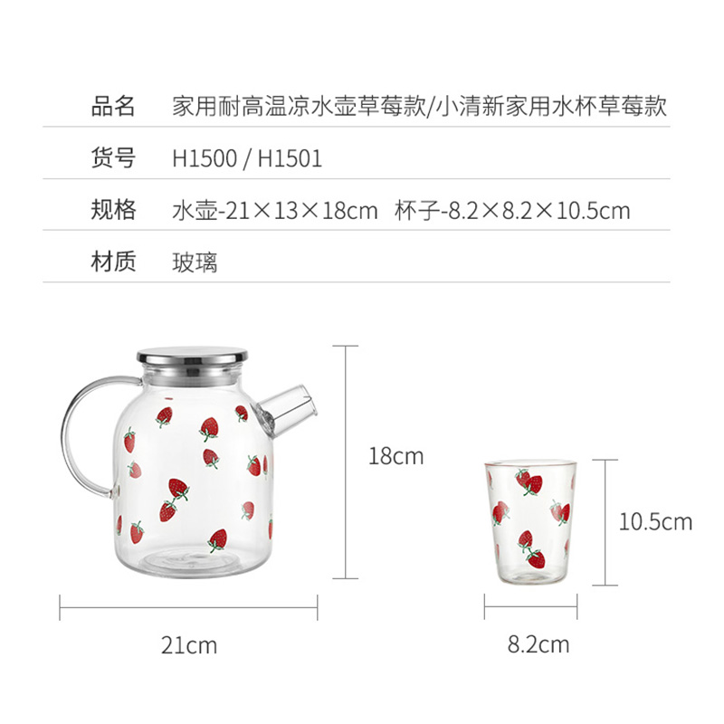 家用耐高温凉水壶草莓款【玻璃/图片色】