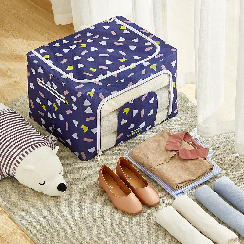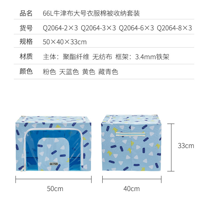 家用礼花碎片600D牛津布收纳箱66L 3个装【主体:90%聚酯纤维 10%无纺布 框架:3.4mm铁架/图片色】