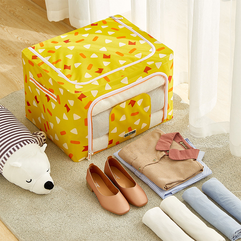 家用礼花碎片600D牛津布收纳箱66L 3个装【主体:90%聚酯纤维 10%无纺布 框架:3.4mm铁架/图片色】
