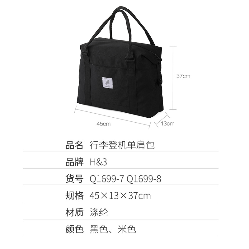 行李登机包单肩包【涤纶/黑色】