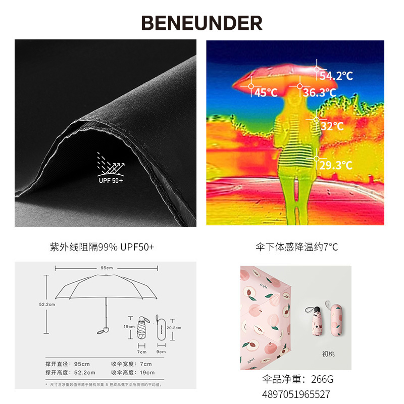 蕉下太阳伞女晴雨两用防晒防紫外线折叠遮阳雨伞小巧便携可爱 果趣【聚酯纤维/(初桃)】