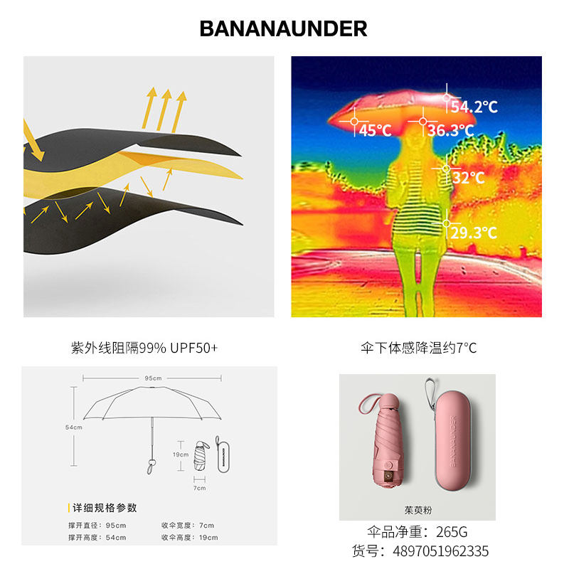便携折叠遮阳伞【伞布: 聚酯纤维伞杆材质: 铝合金/茱萸粉】