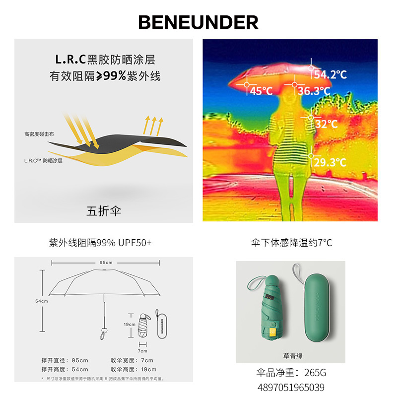 防晒防紫外线女 晴雨伞两用小巧便携遮阳伞【伞布: 聚酯纤维伞杆材质: 铝合金/草青绿】