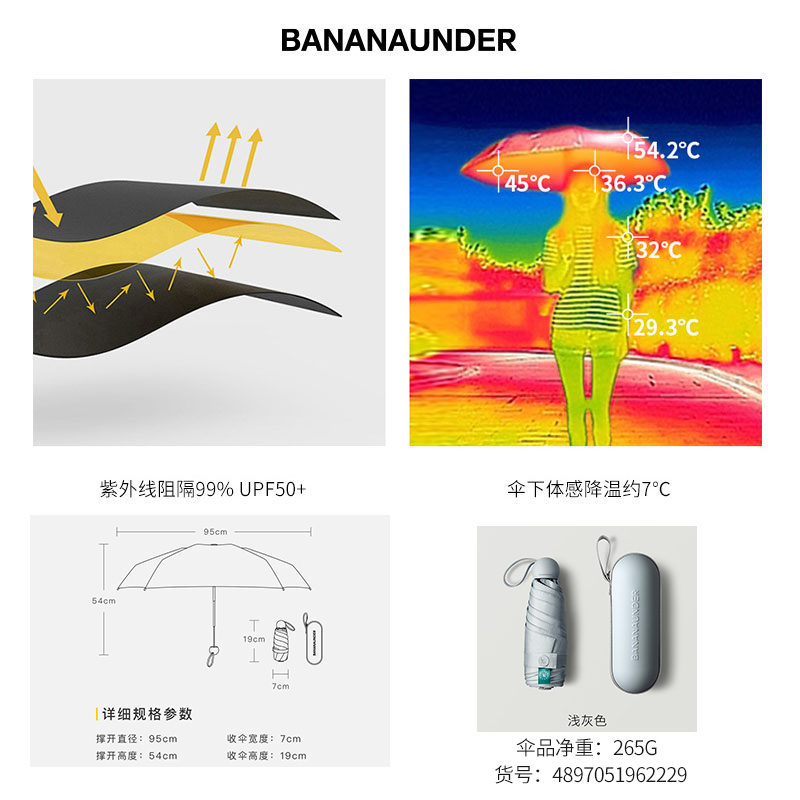 便携折叠遮阳伞【伞布: 聚酯纤维伞杆材质: 铝合金/浅灰色】