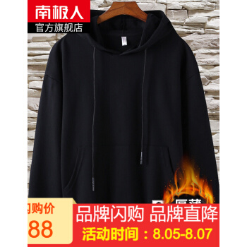 卫衣>>南极人卫衣男连帽2019秋冬新品加绒加厚男士纯棉休闲运动套头卫衣外套男 黑色(11) XL