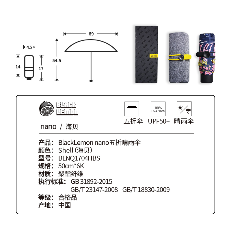 晴雨两用迷你口袋伞【碰击布+黑胶涂层/海贝】