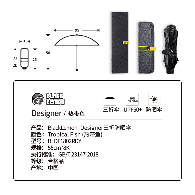 双层伞布防紫外线太阳伞【碰击布+黑胶涂层/热带鱼】