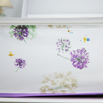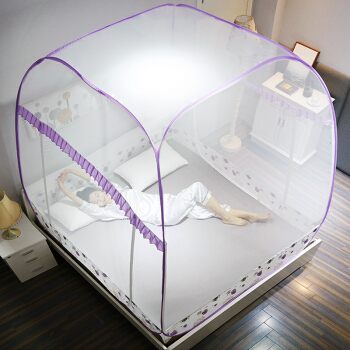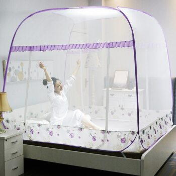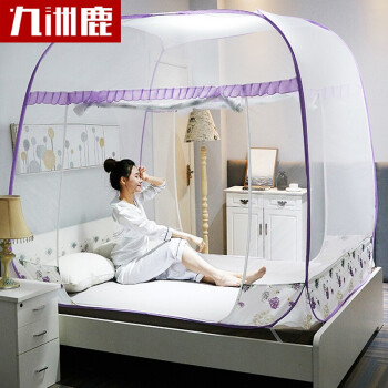 九洲鹿 蚊帐家纺 免安装方顶蒙古包三开门蚊帐有底拉链钢丝可折叠 雪绒花 紫 1.8米床