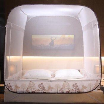 春畔家纺 蒙古包蚊帐1.5/1.8米床双人免安装全底防摔三开门家用纹帐 神秘森林-咖 1.5x2.0米床 |