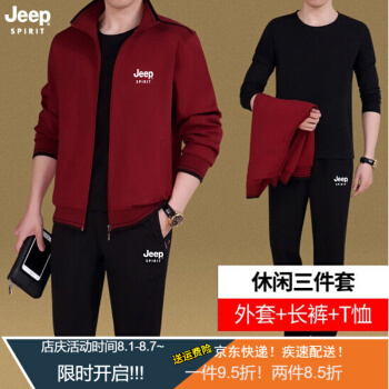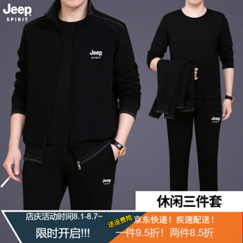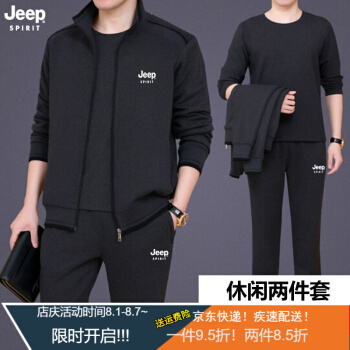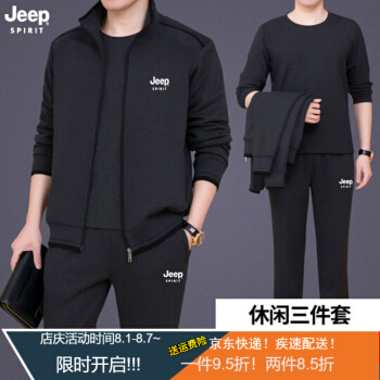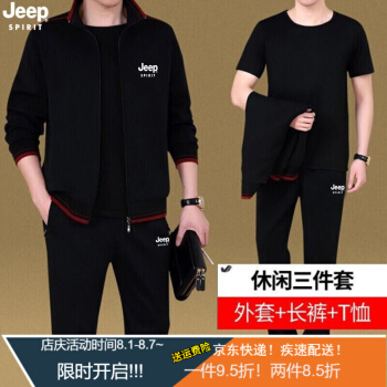 卫衣>>Jeep(吉普)中老年套装男春秋款夏款短袖T恤短裤男爸爸装休闲套装中年运动服装男秋季三件套 8306深灰两件套 XL (建议体重130-145斤)