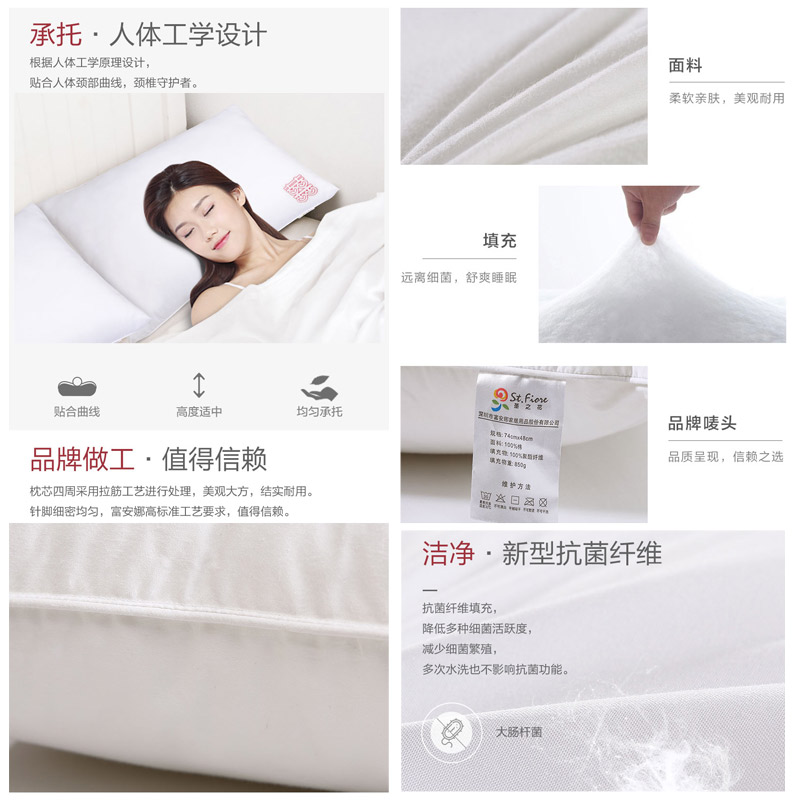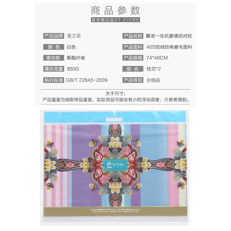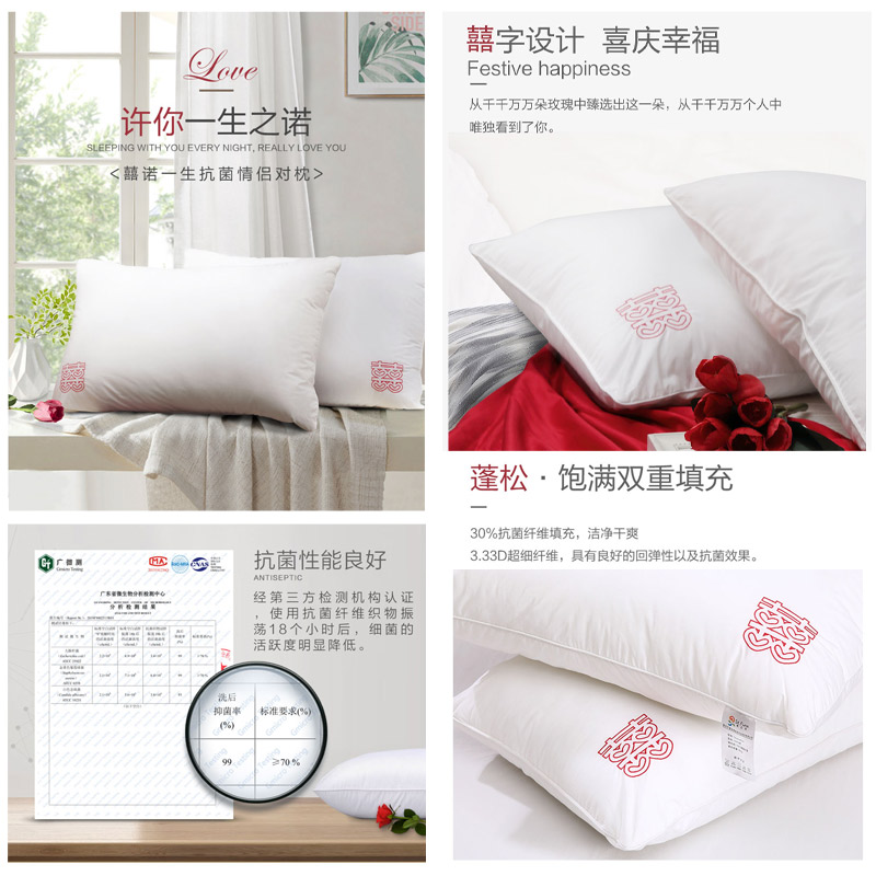 囍诺一生抗菌情侣对枕(枕芯两只装)【面料:纯棉磨毛面料;填充物:聚酯纤维/白】