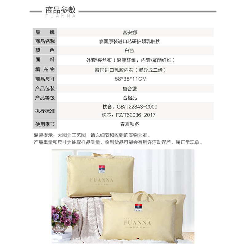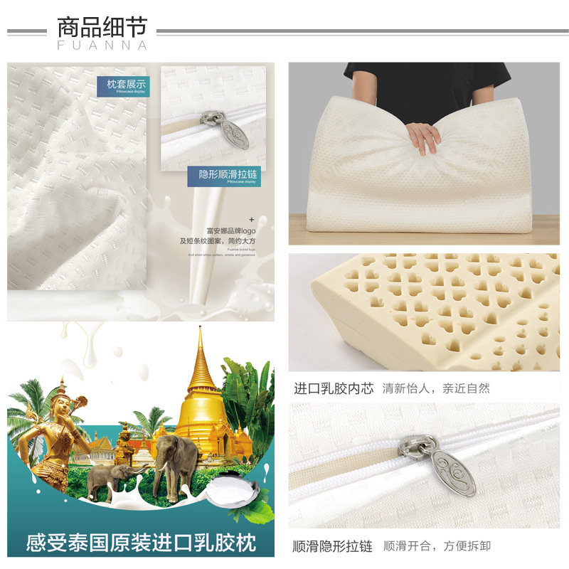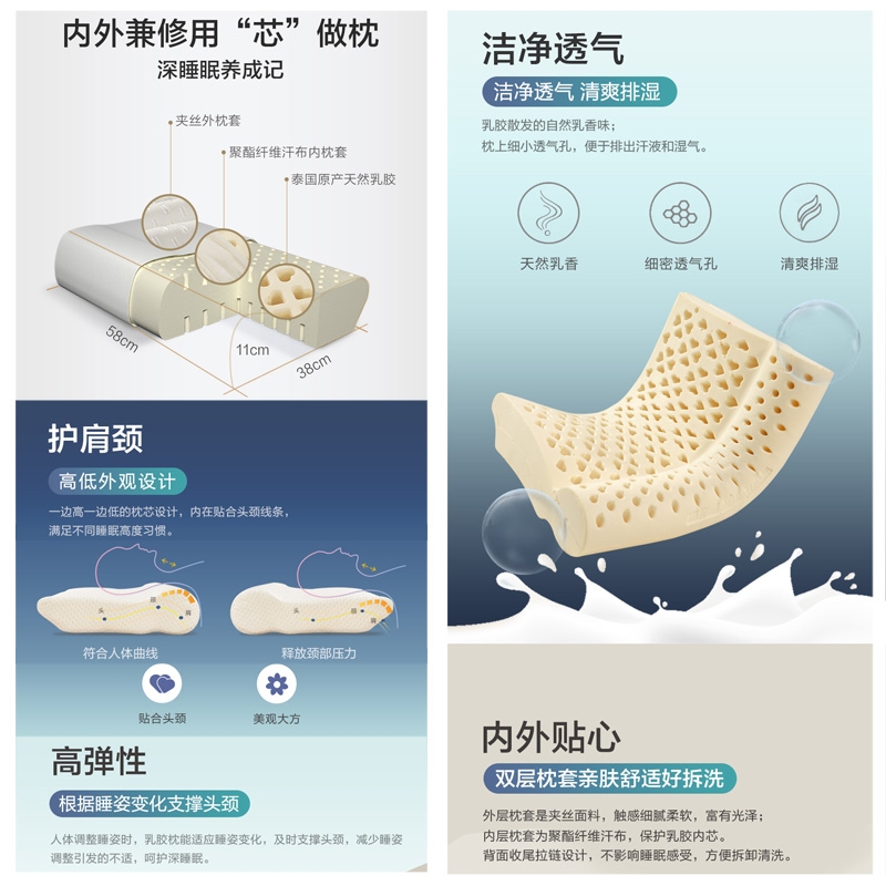 泰国原装进口芯研护颈乳胶枕(枕芯1只)【面料:聚酯纤维;填充物:聚异戊二烯(进口乳胶)/白】