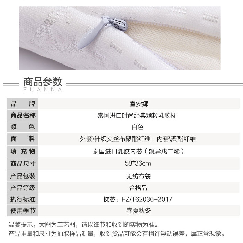 泰国进口颗粒乳胶枕(枕芯单只)【面料:聚酯纤维;填充:进口乳胶/白】