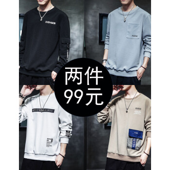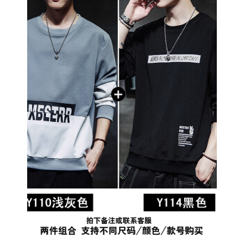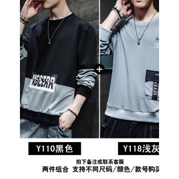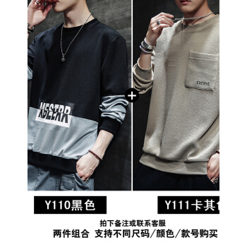 慕林初客卫衣男2018春秋季韩版学生圆领套头男士卫衣夏青年加大码长袖T恤打底上衣衣服 Y112黑色 XL