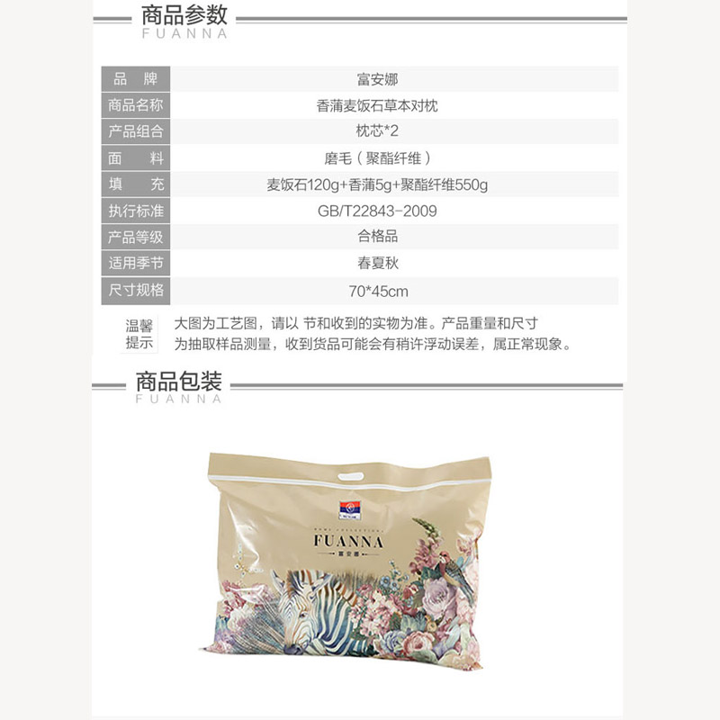 香蒲麦饭石草本对枕 枕芯一对【面料:全涤磨毛;填充:香蒲+麦饭石+纤维/白】