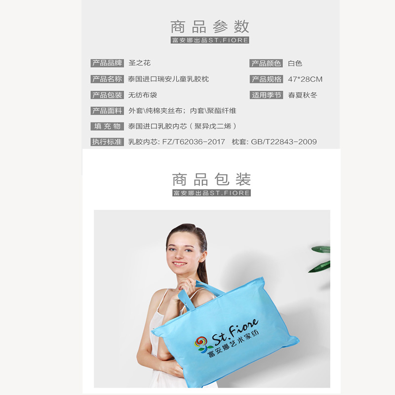 泰国进口瑞安儿童乳胶枕(单只装)【面料:纯棉夹丝布;填充:乳胶/白】