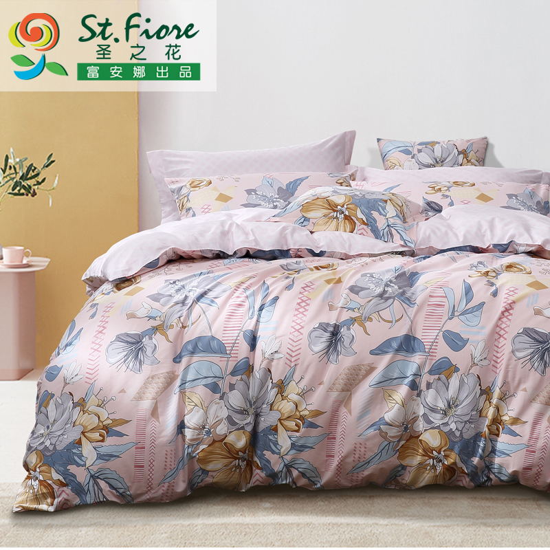 春日初妆 床单四件套(被套1件床单1件枕套2件)(适合1.8米床)【纯棉/粉】