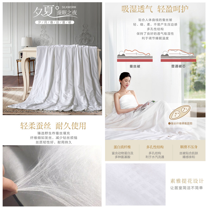 夕月纯棉蚕丝夏被(被芯1件)(适合1.5米床)【面料:纯棉提花;填充:柞蚕丝/白】