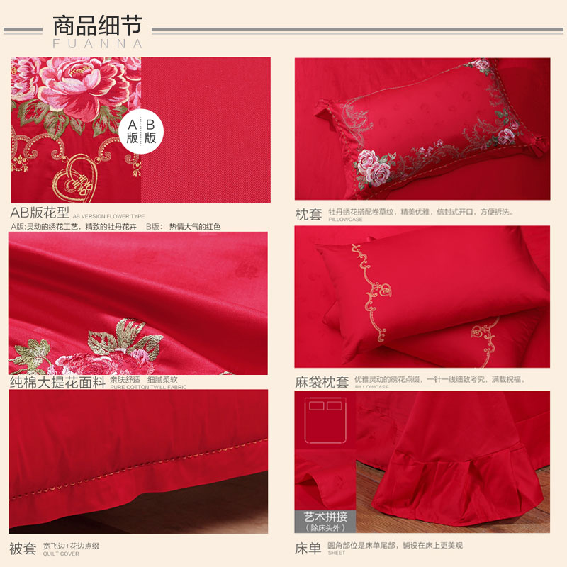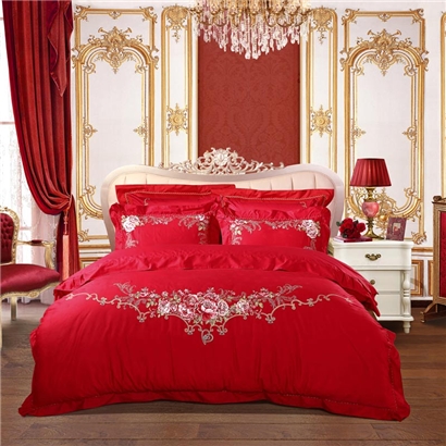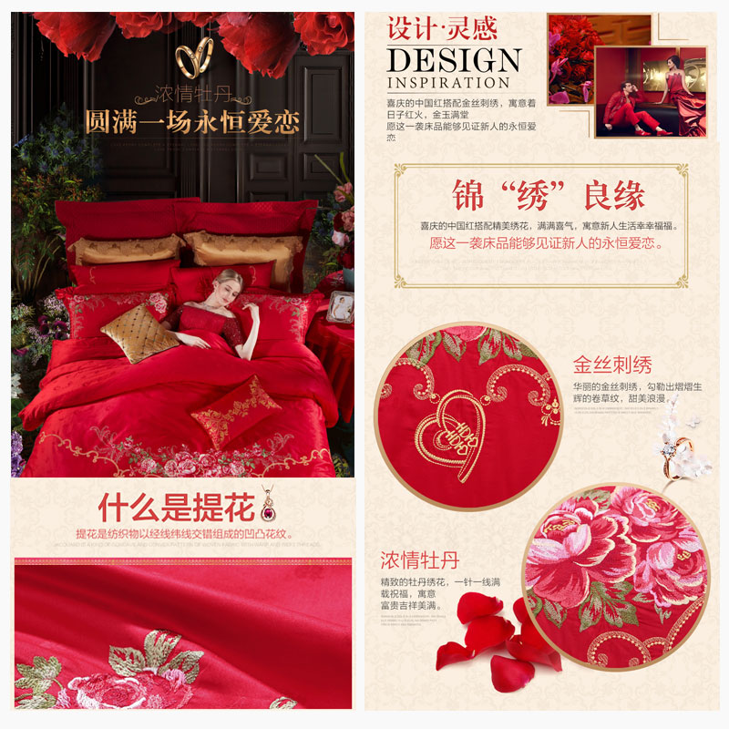 永恒爱恋 床单六件套(被套1件床单1件枕套4件)(适合1.5米床)【纯棉提花/红】