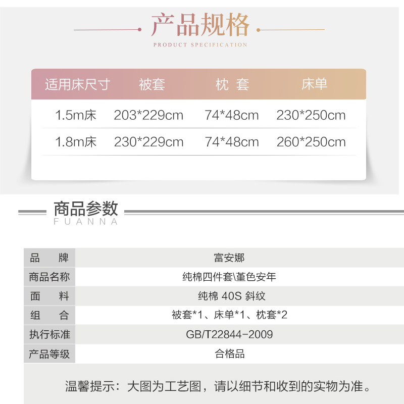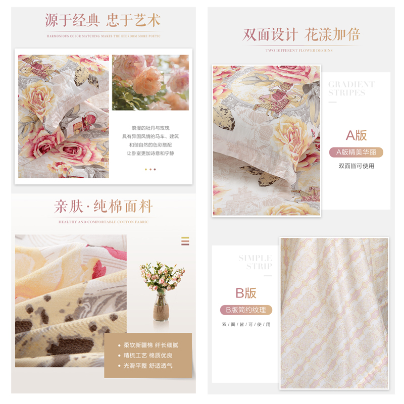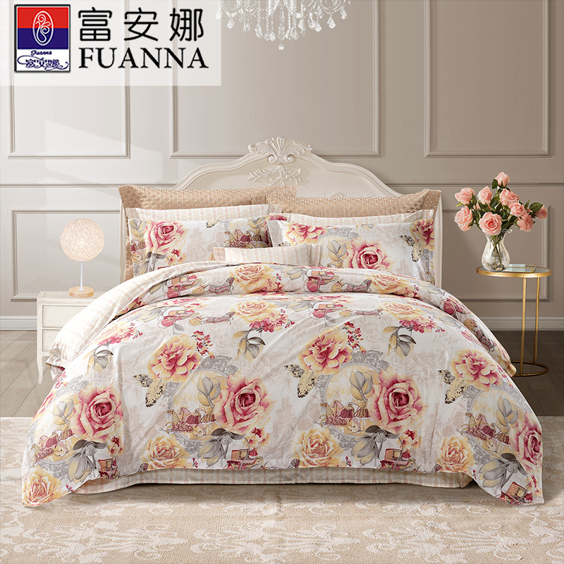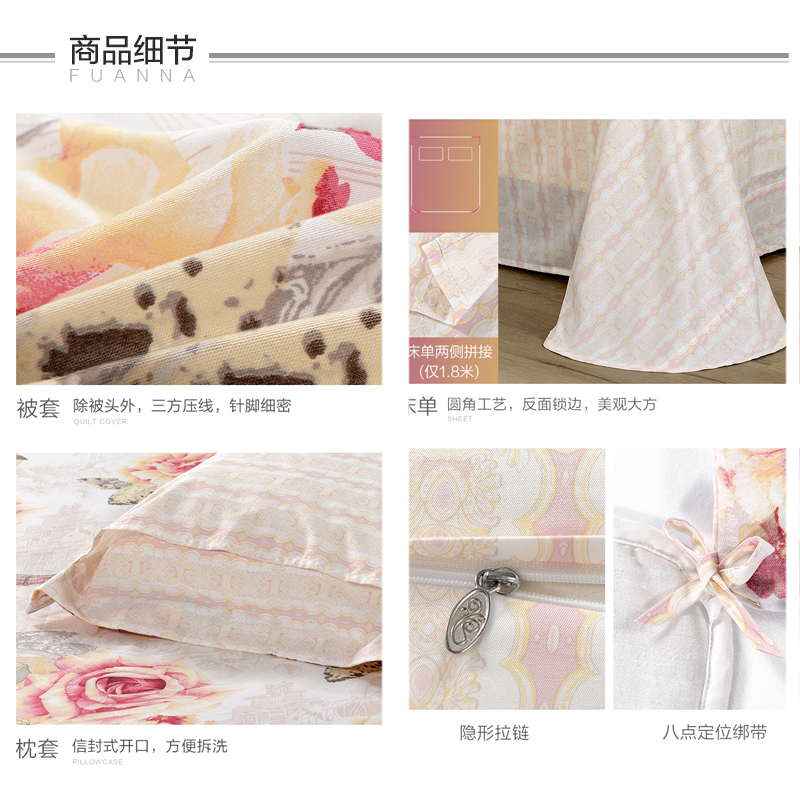堇色安年 床单四件套(被套1件床单1件枕套2件)(适合1.5米床)【纯棉/粉】