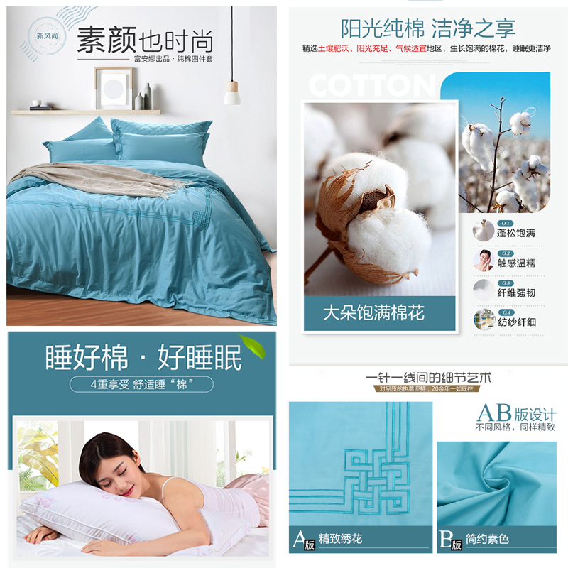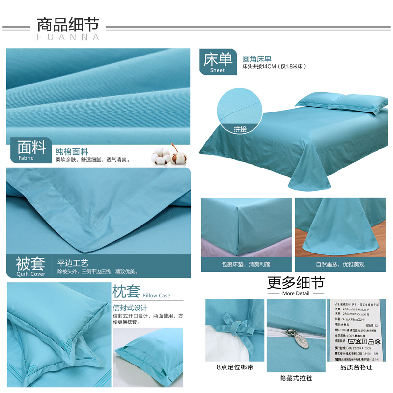 伊人风采 纯棉床单四件套(被套1件床单1件枕套2件)(适合1.8米床)【纯棉/绿】