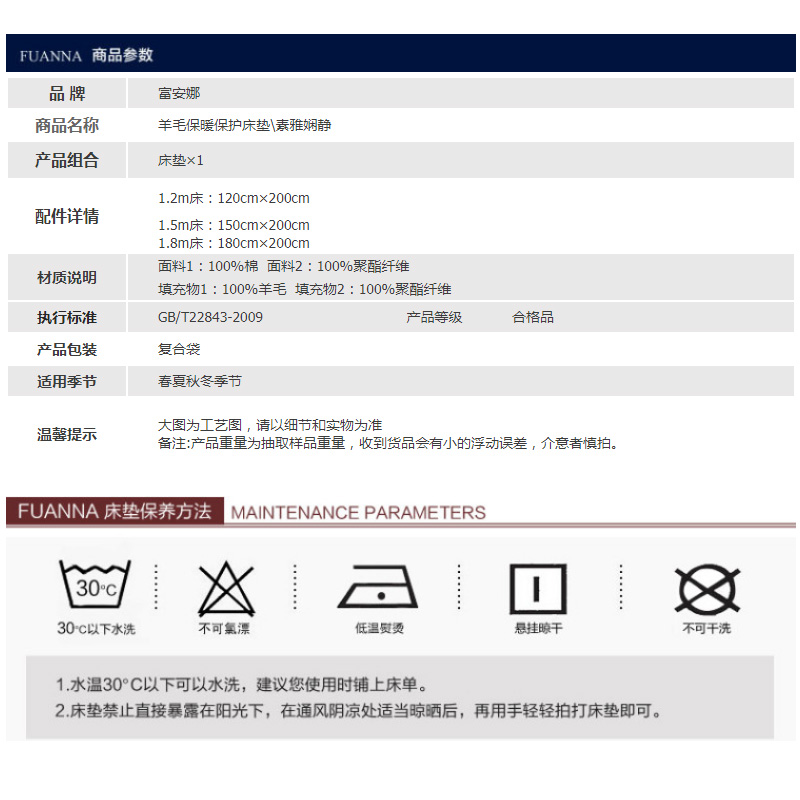 羊毛保暖床垫 橡筋款(床垫1件)(适合1.2米床)【面料:聚酯纤维;填充:羊毛+聚酯纤维/米黄】